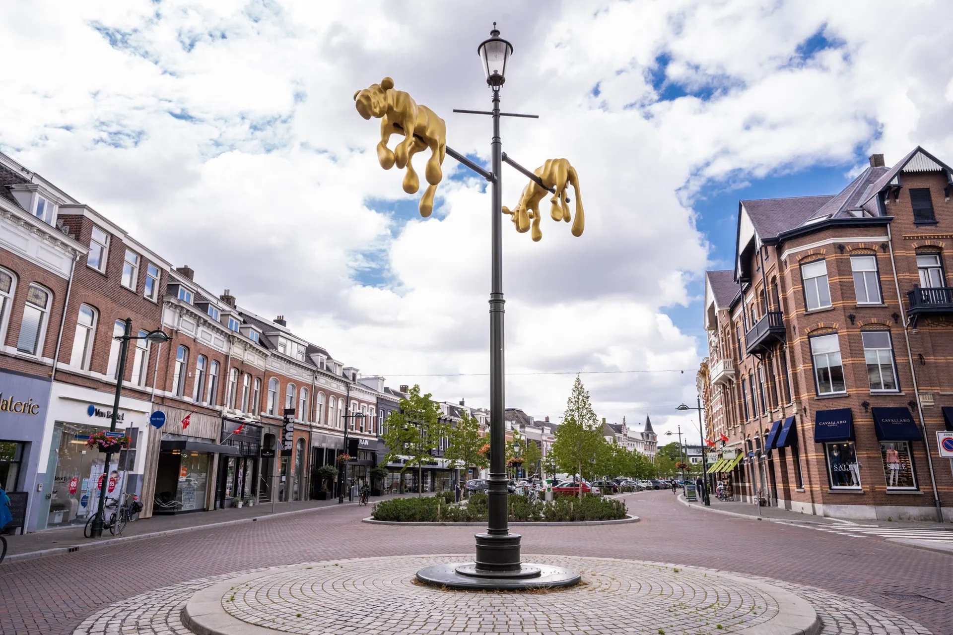 At the transition from Wilhelminastraat to Ginnekenweg stands a special eye-catcher: the Queens. This 8.5-metre-high work of art by visual artist Tom Claassen consists of an antique lamppost on which two gold-coloured lionesses rest. These symbolise the queens Beatrix and Maxima. The artwork was unveiled in 2016 and came about thanks to contributions from the Mondriaan Fund, the municipality of Breda and entrepreneurs from Oranje Zuid.