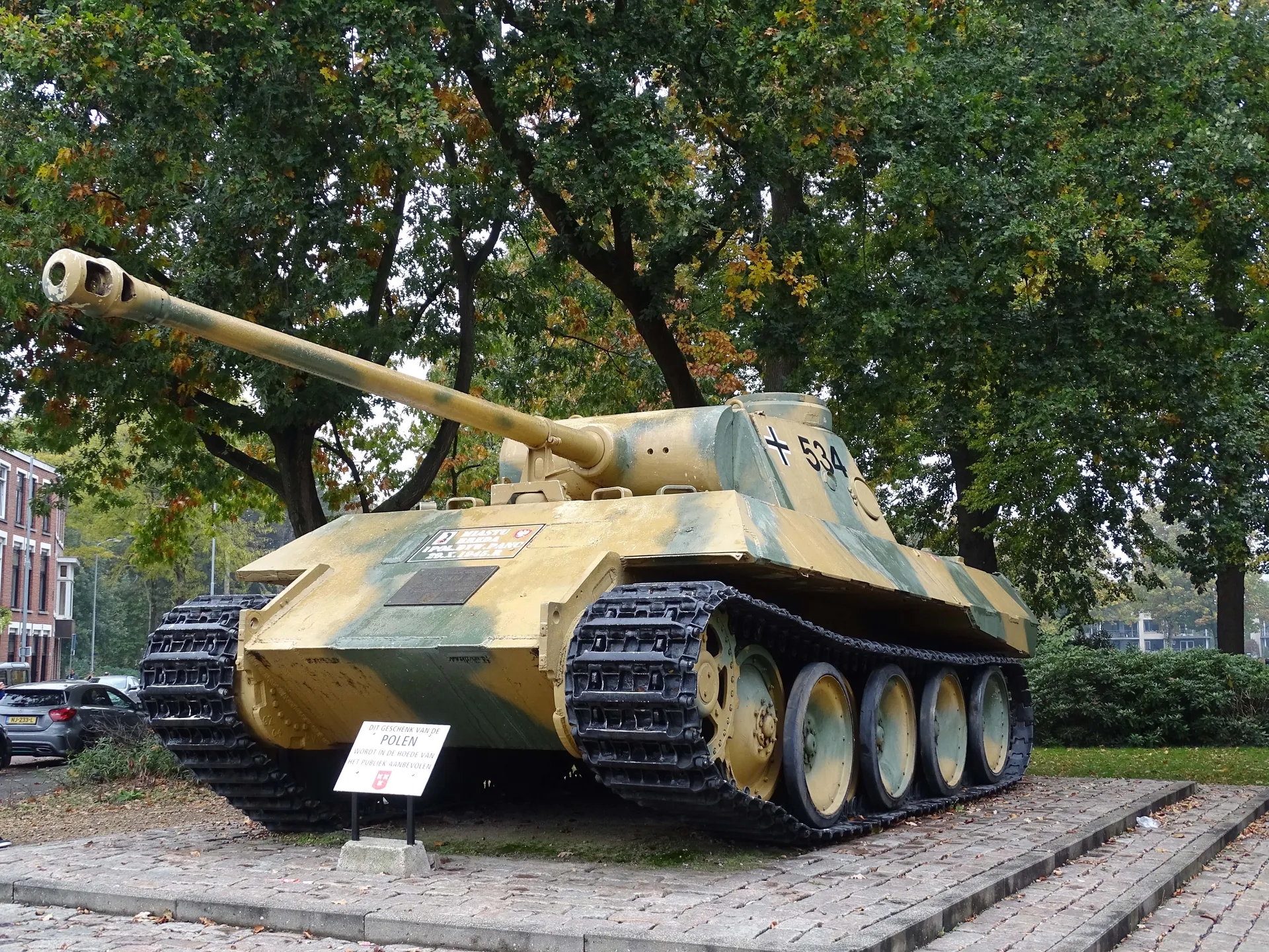 After the unveiling of the monument 'The Eagles', the tank was moved to a barracks area. Polish veterans disagreed with this decision. The tank was refurbished, painted in its original camouflage colours, and placed in Wilhelminapark.