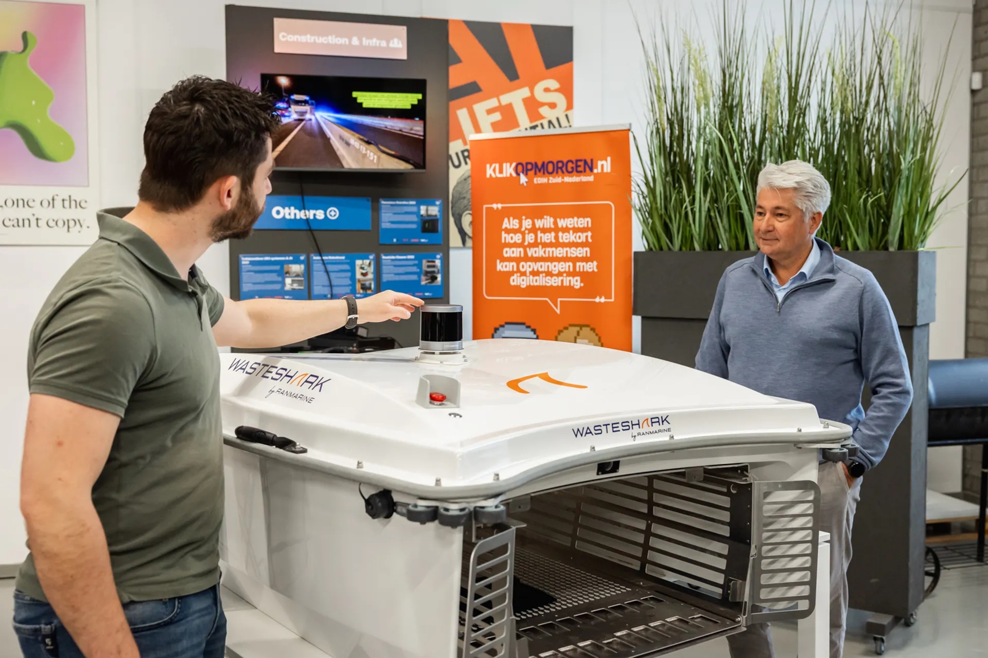 Breda Robotics collaborates with various educational institutions in the city, such as Avans and Curio, to make the WasteShark smarter and more user-friendly. Students contribute ideas about the drone's autonomy, but also on the practical side: how to get such a device safely and easily into the water?