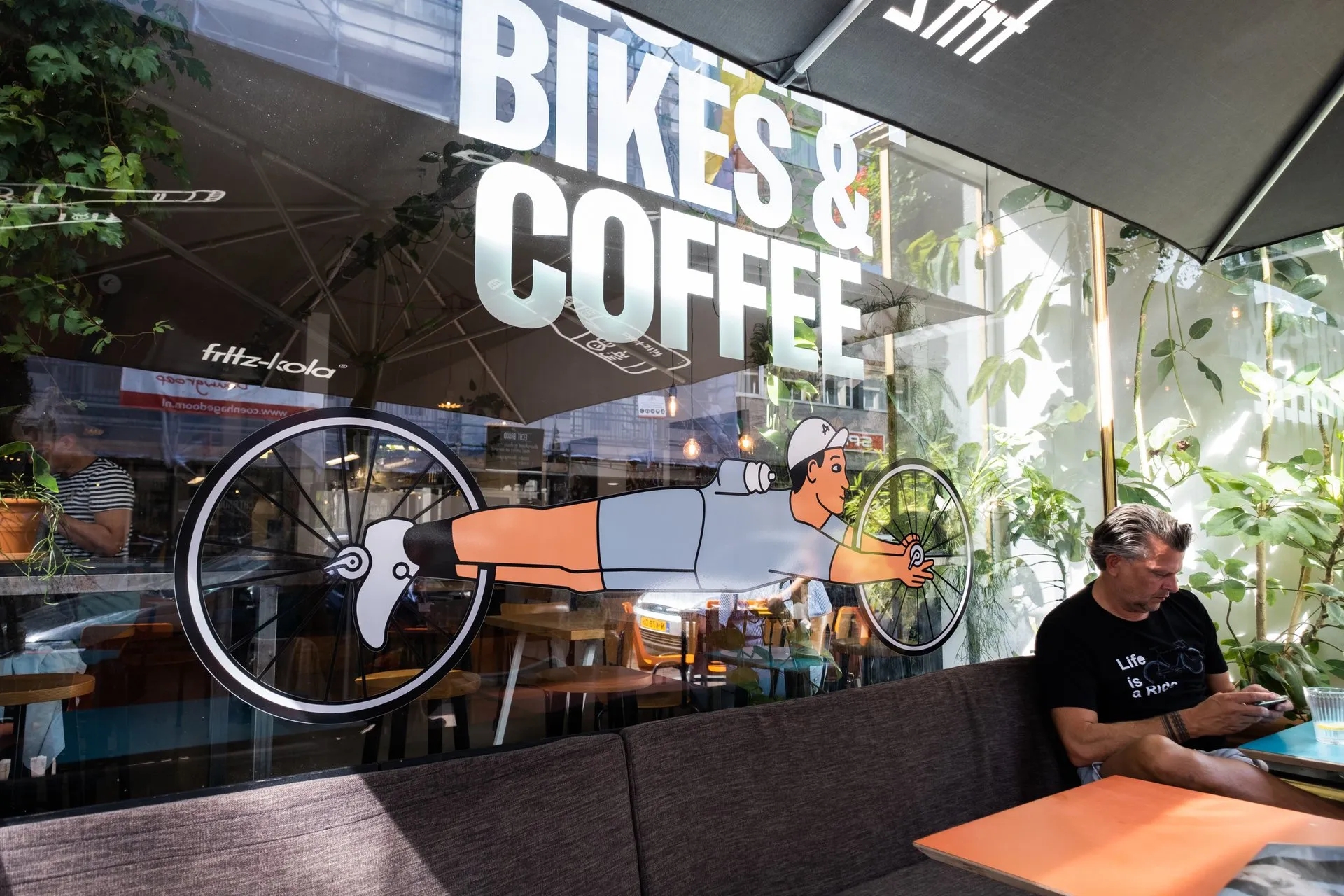 Een bijzondere plek, al heeft bedrijfsleider Sophie dat niet meer zo in de gaten. “Voor mij is deze plek heel normaal, omdat ik hier al vijf jaar werk. Maar mensen die hier voor het eerst komen, zijn altijd erg onder de indruk. Ten eerste van de grootte van de zaak, maar ook van de combinatie: koffie met fietsen. Toen ik hier net werkte, lustte ik geen koffie en fietste ik niet. Inmiddels is dat wel anders”, lacht Sophie. “Ik laat mijn fiets nu hier maken en ga ik regelmatig samen met oud-collega’s fietsen. Ik leer na vijf jaar nog steeds dingen bij over fietsen en koffie.”