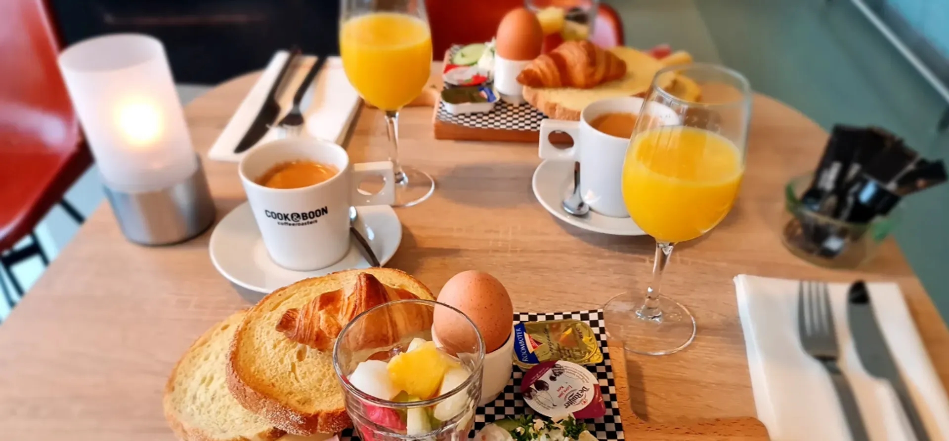 Het ontbijt bestaat uit een goed gevulde plank met dik gesneden brood, hartig en zoet beleg, een croissantje, fruit en een lekker gekookt eitje. Verse jus d’orange en onbeperkt koffie of thee ontbreken natuurlijk ook niet! Vanaf 9.30 uur ben je welkom in de Brasserie voor het ontbijt en om 10.30 uur start de film.