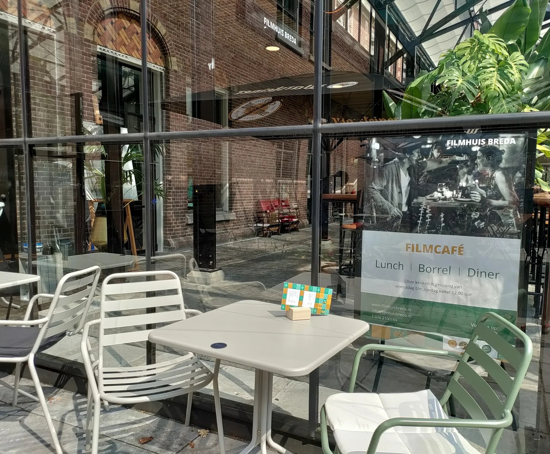 Filmcafé is onderdeel van het Filmhuis Breda. Hier ben je van harte welkom voor een kopje koffie met gebak, een lunch (vanaf 11:30 uur) of een borrel. In het weekend geniet van een driegangendiner. De keuken is iedere dag tot 21:00 uur geopend. Neem plaats in het filmcafé, in de kas of op het terras! Kok Pol staat al voor je klaar.